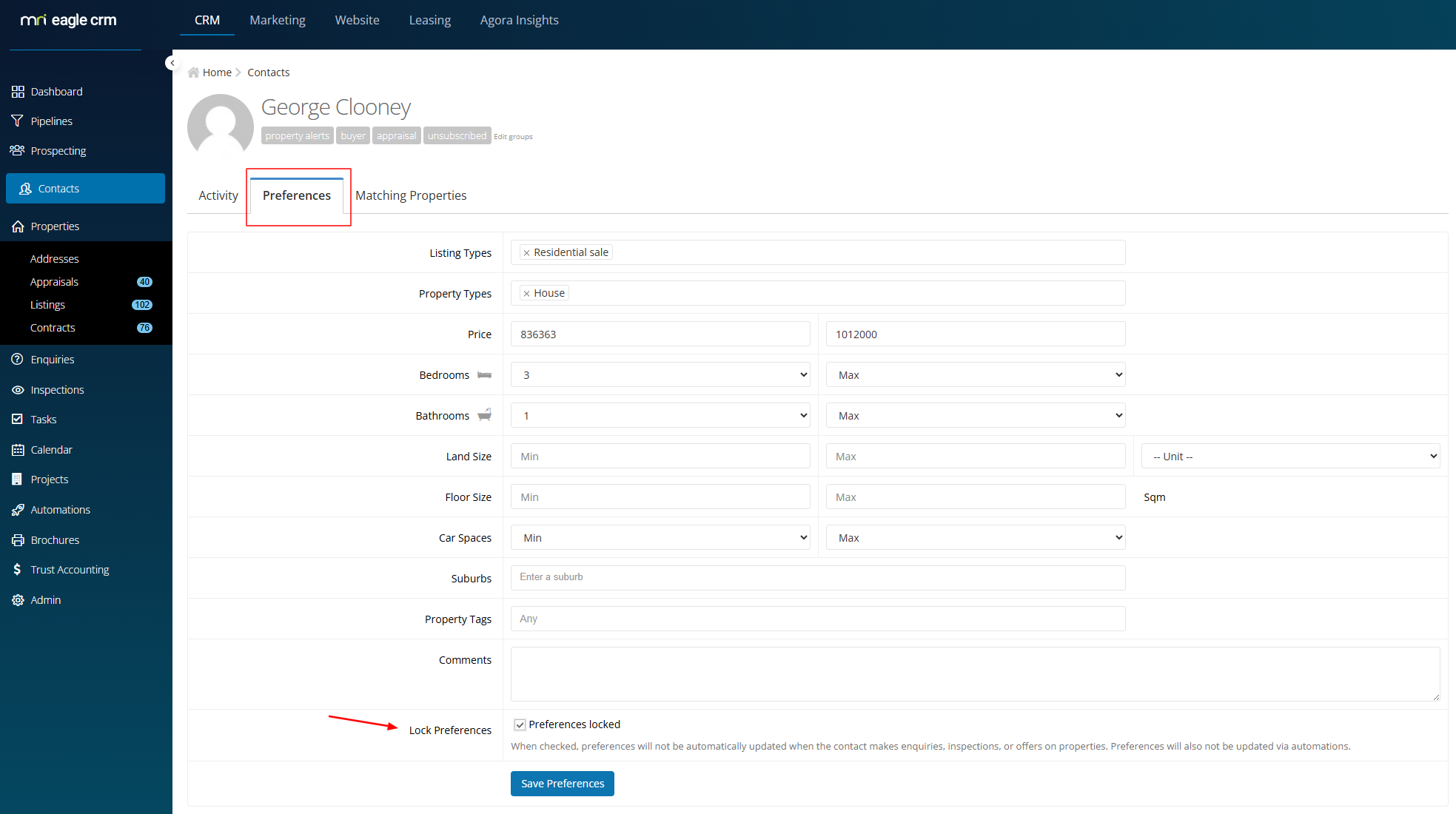 - Preference Lock - Lock a contact’s buyer preferences to prevent them from being overwritten by new enquiries or automations.